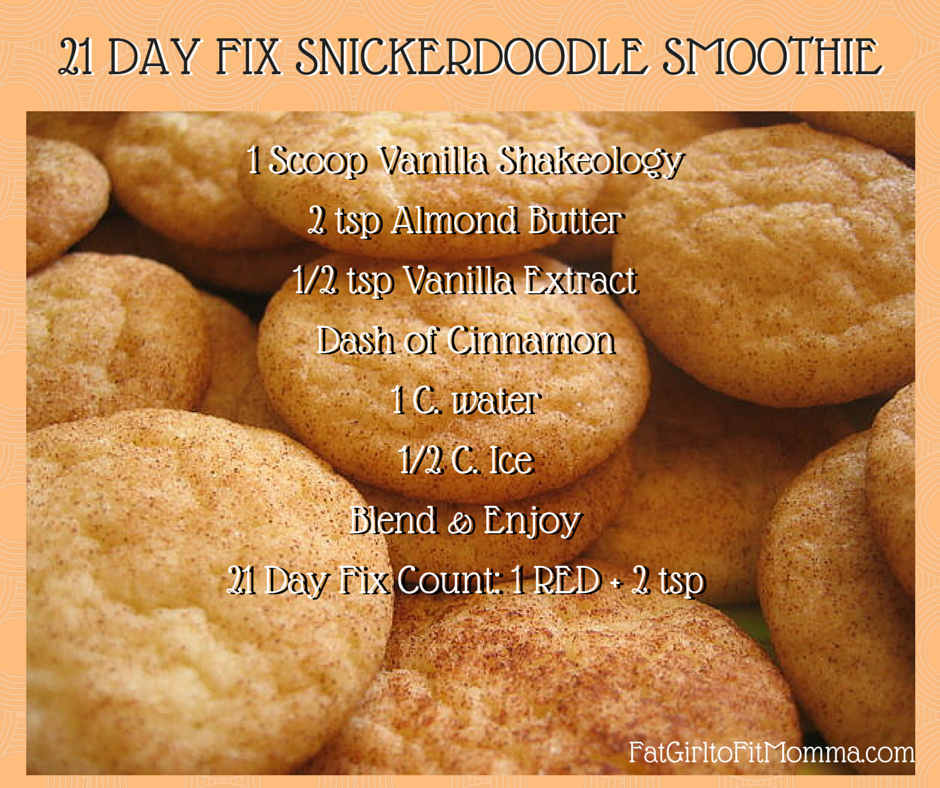 Hands down one of my favorite cookies of all times is the Snickerdoodle, especially fresh out of the oven when they are still soft.  Sadly the sugar, butter, and flour don’t quite fit into the healthy lifestyle and 21 Day Fix Meal plan.  So I created a 21 Day Fix Extreme meal plan approved version to satisfy my sweet tooth and keep me on track.  The best part it is made with Shakeology so I know that I am getting the best possible nutrition in one glass and I don’t have to stress about it throwing my blood sugar all out of whack.
